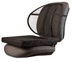 The Kiss My Back Support with Seat Cushion With Vinyl Bag improves every chair. Ideal for the car, office and home, with back strap fitting almost any chair or seat. Body-conforming, ergonomic design decreases back strain and pain, making sitting more comfortable. Mesh fabric allows comfortable airflow, minimizing perspiration.