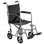 By Drive Medical Design & MFG. Silver Vein Finish. Back folds down for storage and transport. Swing-Away Footrests 8 inch casters in front and rear. Padded armrests provide additional comfort. Attractive nylon upholstery that is durable and easy to clean. Standard rear wheel locks. Comes with upholstery handles to fold chair. Padded Arms Black.