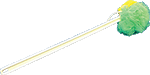 Backscruber Bendable with Exfoliating Puff by Dott Products it has a plastic handle that can be bent and rebent without heating. It allows for users with limited shoulder motion to wash and exfoliate their backs.