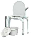 The ProBasics Steel Drop-Arm Commode features a durable steel frame with an easy-release push-button arm mechanism allowing for safe lateral patient transfers to and from the commode. The anti-slip, soft Hypalon® armrests provide extra comfort and support. The frame can be configured to be used as a bedside commode, toilet safety frame or raised toilet seat. The tool-free removable back makes configuring the commode easy for any application.