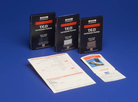 T.E.D™ Knee Length Anti-Embolism Stockings for continuing care are nylon, full-foot without inspection toe. Calf circumference determines size. Distance from bend of knee to bottom of heel determines length. Designed for continued care of the recuperating patient. 1 pair.