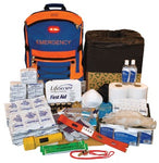 A portable emergency support kit for evacuating students and staff or supporting them in place during a lockdown or for the first several hours after an emergency or disaster. Each survival kit includes survival supplies for up to 29 students and one teacher. High-visibility marking and flashing safety signal provide quick emergency identification and increased safety in use. These kits also provide portable emergency support for field trips and other off-campus events.