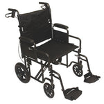 The Roscoe Medical Heavy Duty Transport Chair offers companion activated loop style brakes, padded nylon upholstery that is lightweight and easy-to-clean, strap handles on seat allow for ease of folding and lifting, and back release hinge that allows back to fold down for easy storage and transport.
