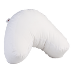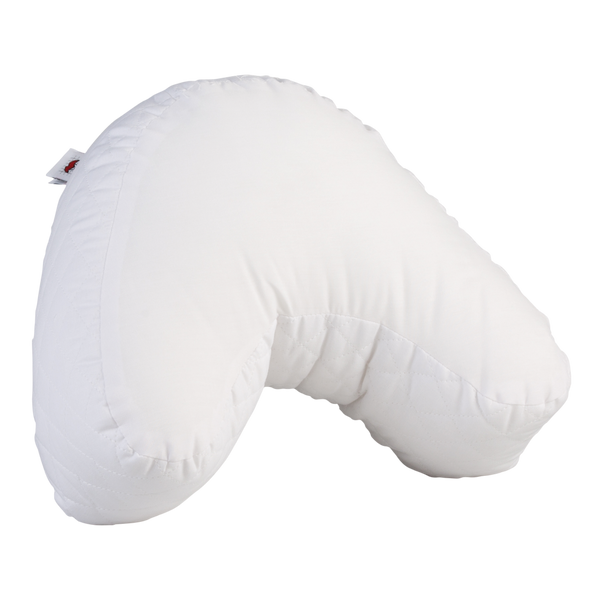 The Core® Mini CPAP Pillow is great for travel or home and provides increased comfort and compliance for CPAP users by helping prevent pressure point soreness and air leaks for a restful night's sleep. Although this pillow was designed by a CPAP user, it is also ideal for those who are required to sleep on their side or stomach for other reasons such as pregnancy, fibromyalgia, and chronic pain. Its small size fits conveniently in a suitcase. For higher loft, place the Mini CPAP Pillow on top of a conventional pillow. The unique shape and quilted side panels create a distinct edge, allowing the mask and hose to comfortably hang over the side of the pillow. This helps prevent mask/pillow interference and keeps the CPAP mask from moving or placing excessive pressure on the face. The resilient fiber fill supports the head while the crescent shaped cutout contours the shoulder for a restful night's sleep. The CPAP Pillow is firm enough to support the head without losing its edge, yet comfortable enough to sleep on all night. A washable, fitted pillowcase is included. . 18”x 9” Materials: Cover- 50% Polyester/ 50% Cotton Filling- 100% virgin polyester Pillowcase- 92% Cotton / 8% Spandex Product Size: 13" x 19" x 4" Product Weight: .6 LBS Color: White Latex: This product is not made with natural rubber latex Product Origin: Made in US