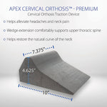 The Apex Cervical Orthosis Premium is an effective tool to assist the health care professional in restoring a patient’s proper cervical lordosis; use daily under the supervision of a health care professional.