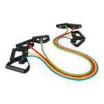 Body Sport resistance Tube with handle comes in retail packaging. It provides a natural rubber tubing provides a smooth, consistent stretch. Durable tubing measures 4’ long. Feature cushioned, foam handles for a comfortable grip, include instruction guide. Contains latex.