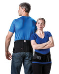 Our CorFit patented fitting system allows us to create belts proportionally sized in height and length to provide taller belts for larger people and smaller belts for petites and children. It’s the belt that fits everyone. A Lumbosacral Support with the same great sizing and features of the CorFit (page 29) in an industrial version for the working man or woman. Internal suspenders keep support in place prior to lifting and are more convenient than shoulder straps. Opposing side pull assists provide additional compression and support. Black. Available in S, M/LG, XL, 2X, 3X, 4X or 5X. Additional charge for sizes larger than XL.