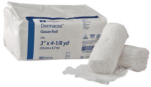 Dermacea Low Ply Gauze Rolls are made of prewashed, fluff-dried 100% woven gauze for soft, absorbent performance and patient comfort. The unique 3 ply construction offers finished edges that virtually eliminates lint particles and is ideal for securing dressings.