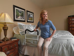 The Drive Medical Adjustable Height Home Bed Assist Handle provides assistance for getting in to and out of a home-style bed without worrying about the fit because the handle attaches to either side of the bed. It simply slides underneath the mattress and includes a "no-slip foam" that helps keep the bar in place. The unit can be assembled quickly and tool-free, and it also can be adjusted flat for storage.