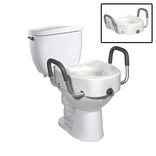 Drive Medical Premium Plastic Raised Toilet Seat with Lock and Padded Armrests, Elongated