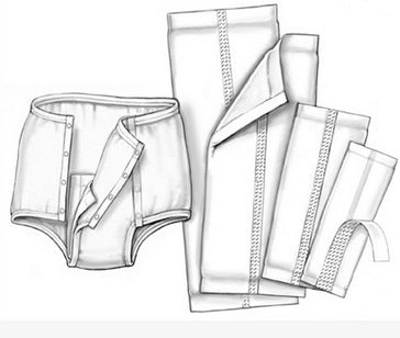 • Reusable cotton pants have elastic waist and leg bands for improved comfort and fit.