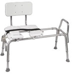 The Heavy Duty Sliding Transfer Bench With Cut-Out effortlessly slides side to side, reducing physical strain on user and caregiver.
