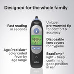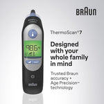ThermoScan® 7 Age Precision® is number 1 brand used and recommended by doctors. This ear thermometer features the new patented technology which is an age-adjustable fever guidance which completely takes the guesswork out of interpreting child’s temperature. Simply select child’s age, take temperature and the color coded display will help understand the temperature reading, based on the age of the child and act accordingly.