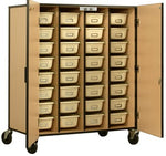 For flexible design and accomodating options: This storage cabinet has three furniture finishes (maple, oak, or cherry), and is available in a mobile (on casters) or stationary (on base) option. The storage cabinet also includes a full 10-year warranty.