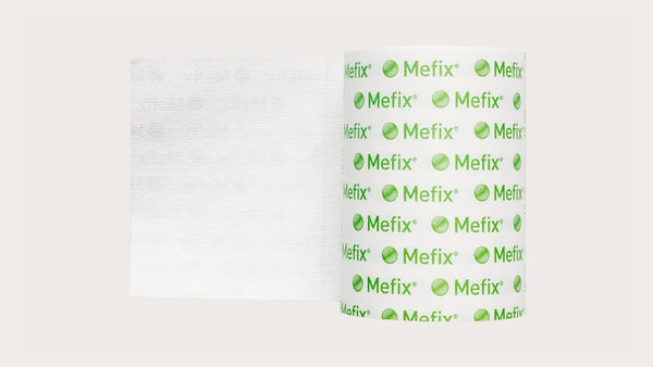 Molnlycke Mefix® Self-Adhesive Dressing Tape is a dressing fixation fabric tape that secures gauze, tubes, cannulas, dressings and drainage devices even to awkward areas of the body. The porous structure of the nonwoven fabric ensures air and water vapor permeability. The fabric is non-absorbent and provides a barrier for blood and fluid strike-through. It can easily be cut to the desired shape and size.