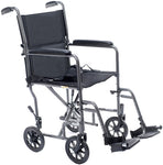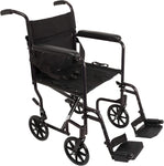 The ProBasics Transport Chair is a compact, lightweight design with an easy-to-maintain finish. The flared handles and handy back-release hinge allow the back to fold down flat and compact for easy storage and transport. Comes complete with seat belt, tool-free swing-away composite footrests and heel loops. Fits patient weights up to 300 pounds.