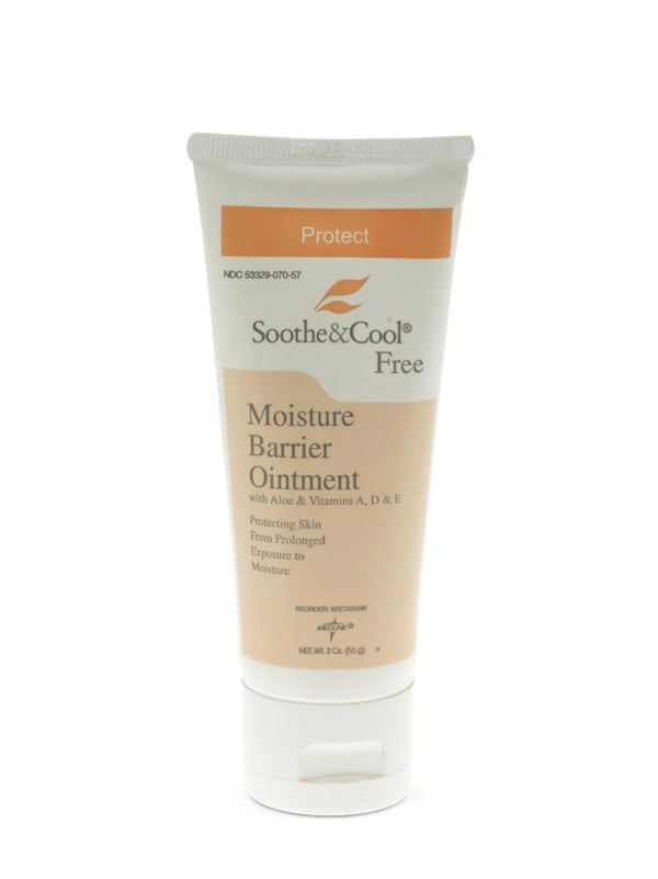 Soothe & Cool® Moisture Barrier Ointment is recommended when skin is at risk, but has not been compromised. Enhanced formula with vitamins A, D and E, along with aloe, nourish the skin. Prevents moisture, urine and fecal matter from contacting skin. Perfect for cases of incontinence, post-op or wound drainage. A thin, occlusive layer of petrolatum protects even in the presence of urine.