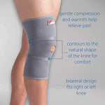 The layered thermal lining features a soft, nylon material that wicks away moisture and a microventilated, breathable membrane that captures and retains your natural body heat to ease pain. This allows moist air to escape keeping the skin comfortable. With unsurpassed quality, these supports provide gentle compression and warmth to help reduce swelling and associated pain as well as promote recovery.