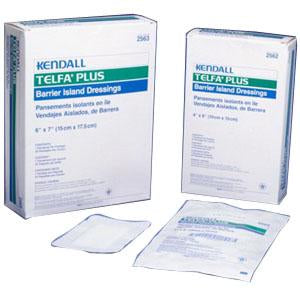 TELFA PLUS Barrier Island Composite Border Dressing 6" L x 10" W, Sterile, Water-proof, Soft Nonwoven Backing, Super Absorbent . The soft, non-woven backing conforms and seals wound on all four sides.