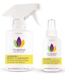 Thera Antimicrobial Body Cleanser by McKesson is a no-rinse topical antiseptic spray that reduces an inhibits bacterial growth, is a non-allergenic or non-sensitizing. Not made with a natural rubber latex.