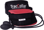 Portable and lightweight traction collar inflates with dual bulbs to gently stretch and relax muscles slightly for pain relief. Developed by orthopedic engineers for comfortable, effective daily treatment. Collar is constructed from plastic foam; internal inflatable bladders contain natural rubber latex.