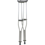 ProBasics Aluminum Crutches are sturdy, lightweight anodized aluminum crutches with push-button height adjustment. The extra thick underarm pads and grips offer comfort for use. The double extruded center tube is a solid one piece design providing additional strength to weight-bearing area. Non-skid rubber tips provide excellent traction and absorb shock. Easy wing nut adjustments for hand grips. Available in youth, adult or tall sizes to accommodate all individuals. Supports patient weights up to 350 pounds.