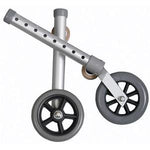 Medline 5" Walker Wheels. Front wheel foot pieces not only allow you to easily maneuver over surfaces which provide difficulty for walker users, but they also provide a more natural walking stride. Wheel attachments are to be used on the front legs of a walker only. All wheels come with a set of glide caps.